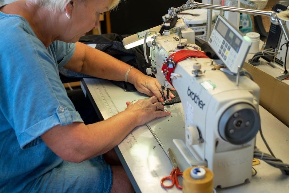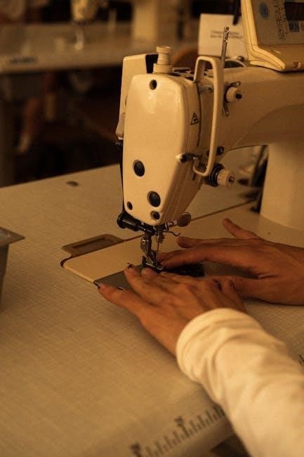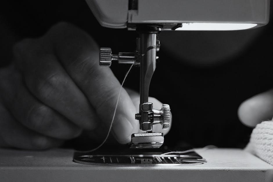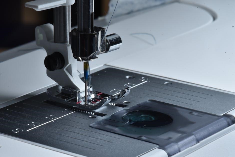 The needle’s precise movement is crucial for stitch formation, driven by the machine’s internal mechanisms. Understanding needle types – universal, ballpoint, etc. – ensures compatibility with various fabrics. Proper needle insertion, with the flat side facing the back, is essential for correct operation.